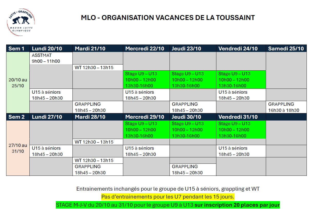 Entraînement inchangé pour les groupes westlring training, grappling, lutte U13 à seniors.